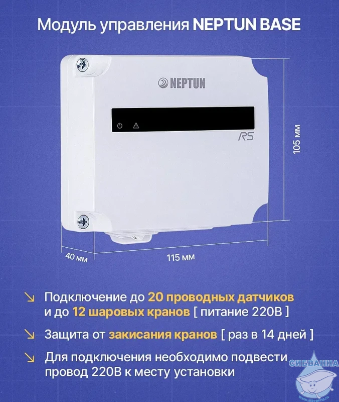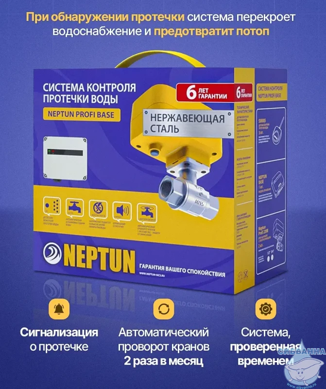 Система защиты от протечек Neptun Profi Base 1/2" — это надёжное решение для предотвращения последствий аварийных ситуаций, связанных с протечками воды. Она обеспечивает своевременное оповещение о возникновении аварии благодаря световому и звуковому сигналам. Датчик системы оснащён индивидуальной платой, что гарантирует высокую точность и надёжность его работы. Это исключает возможность ложных срабатываний и обеспечивает спокойствие и уверенность в безопасности вашего дома. Степень защиты IP67 гарантирует полную герметичность системы. Это означает, что она способна выдерживать воздействие влаги и пыли, что особенно важно для обеспечения бесперебойной работы в различных условиях. Усиленная конструкция включает увеличенную толщину стенки корпуса около шара — самого уязвимого элемента системы. Это повышает прочность и долговечность устройства, минимизируя риск повреждений и обеспечивая долгосрочную надёжность работы. Для удобства пользователя система оснащена усиленной ручкой и удобной кнопкой для ручного управления краном. Это позволяет быстро и легко перекрыть воду в случае необходимости, обеспечивая дополнительный контроль над системой и повышая комфорт использования. Выбирая систему защиты от протечек Neptun Profi Base 1/2", вы получаете надёжного помощника, который защитит ваш дом от неприятных последствий аварийных ситуаций, связанных с протечками воды.