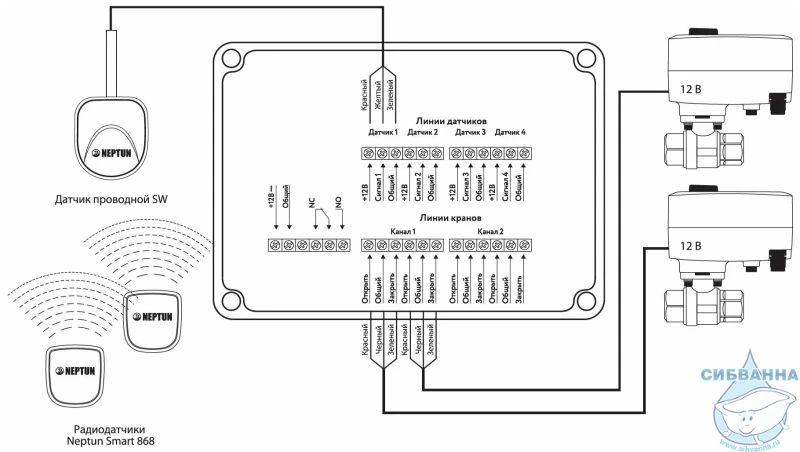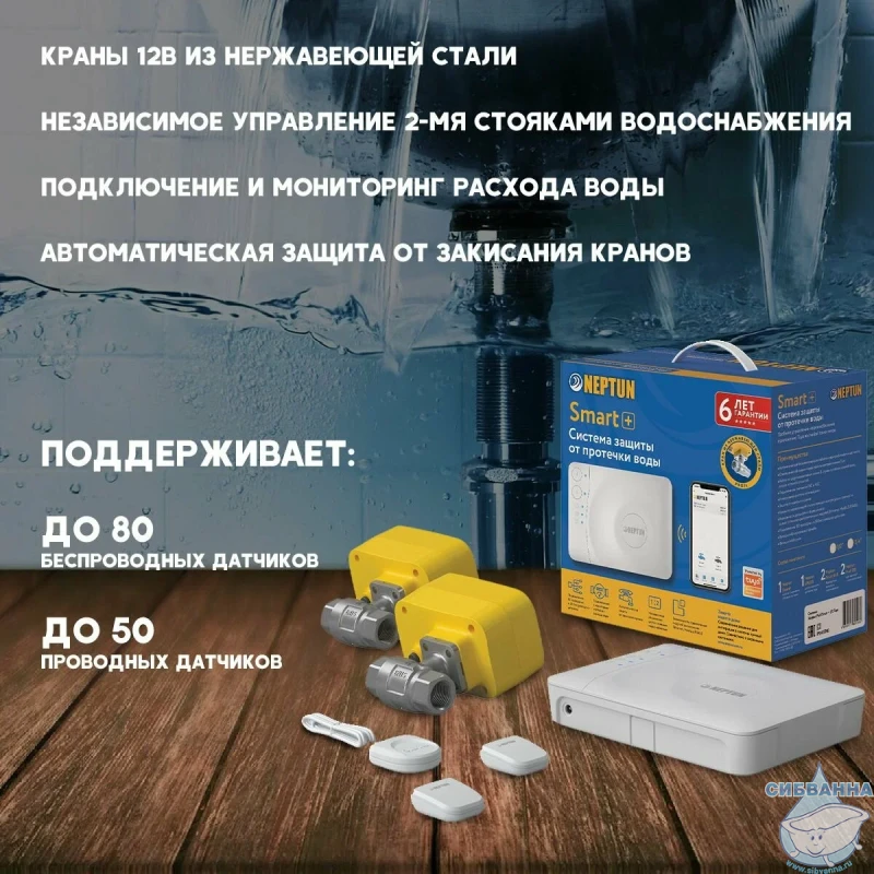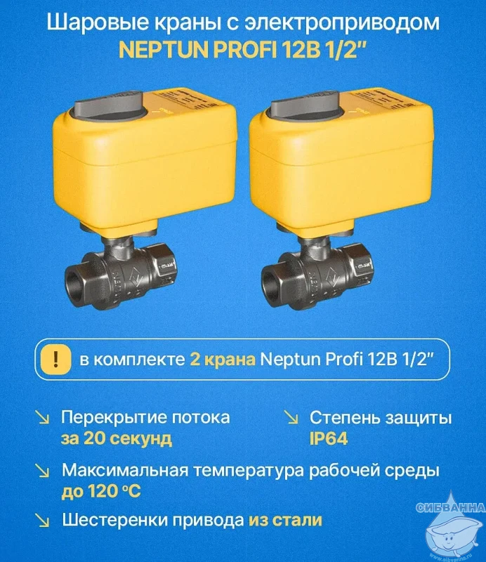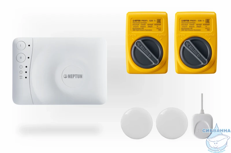 Neptun Profi Smart поступает в продажу в комплекте с основными приборами, которые необходимы для установки системы и обеспечения ее бесперебойной работы. В составе модуль управления (1 шт), радиодатчик Neptun Smart 868 (2 шт), датчик Neptun SW 005 (1 шт), шаровой кран с электроприводом Neptun PROFI 12В (2 шт) и блок питания на 12 В (1 шт).