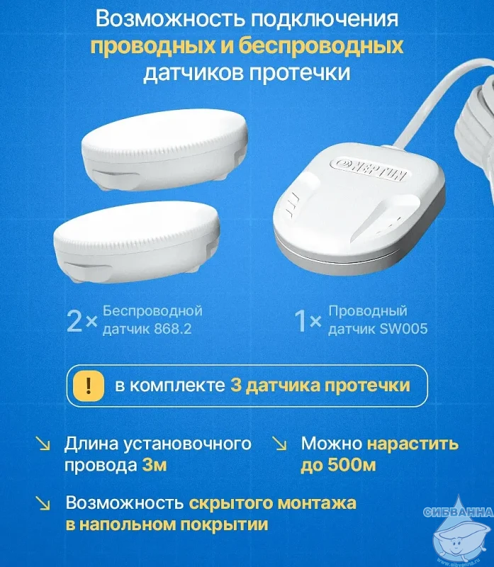 · В автоматическом режиме блокирует водоснабжение, если среагирует установленный датчик. Время закрытия составляет 21 секунду.