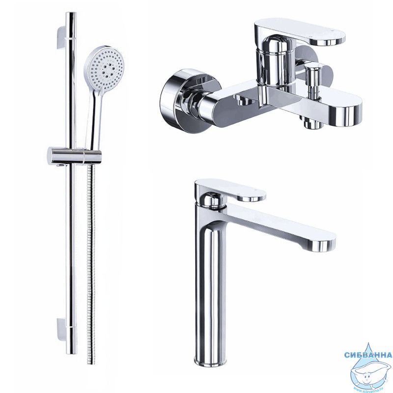 Набор смесителей 3 в 1 для ванны Azario VIANO, хром (AZ-15830501+AZ-15834551+AZ-15782010)