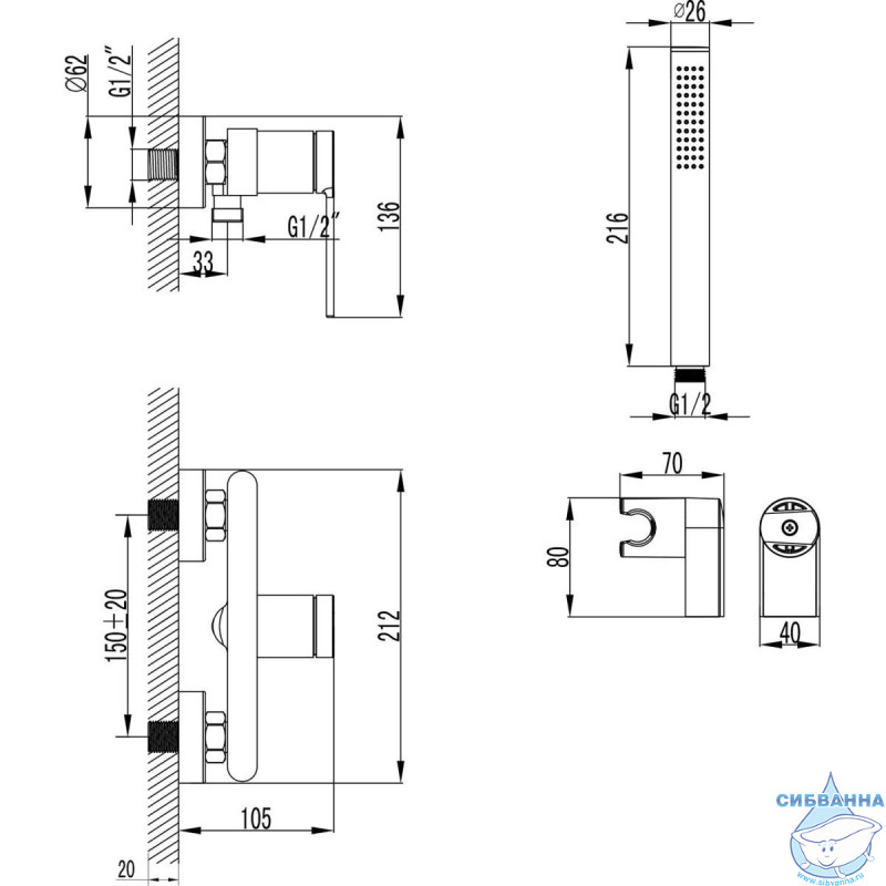 Смеситель для душа Azario VINCENTE с ручным душем, керамический картридж, без излива, (AZ-VRZ338326)