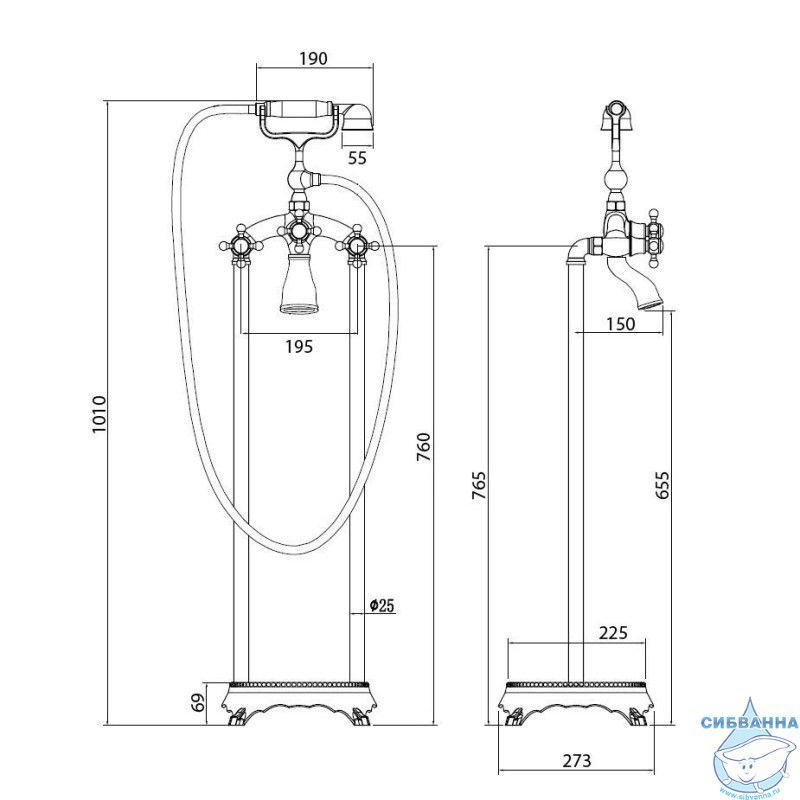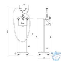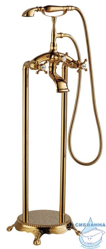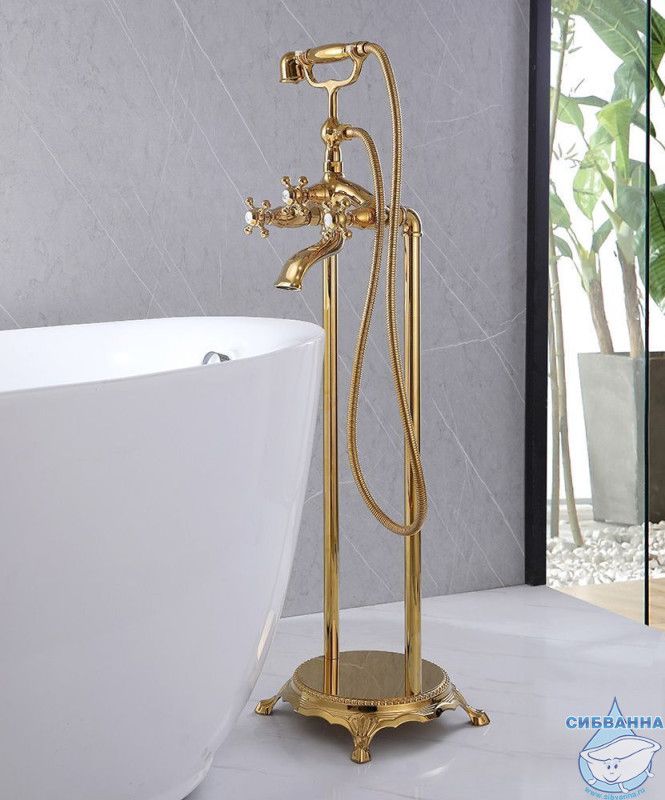 Скрытая часть в комплекте !! Ширина 19.5 Высота 105 Излив традиционный Количество монтажных отверстий 2 Лейка есть Назначение напольный Покрытие золото Стиль классический Тип двухвентильный Коллекция Klassik Гарантия 5 лет