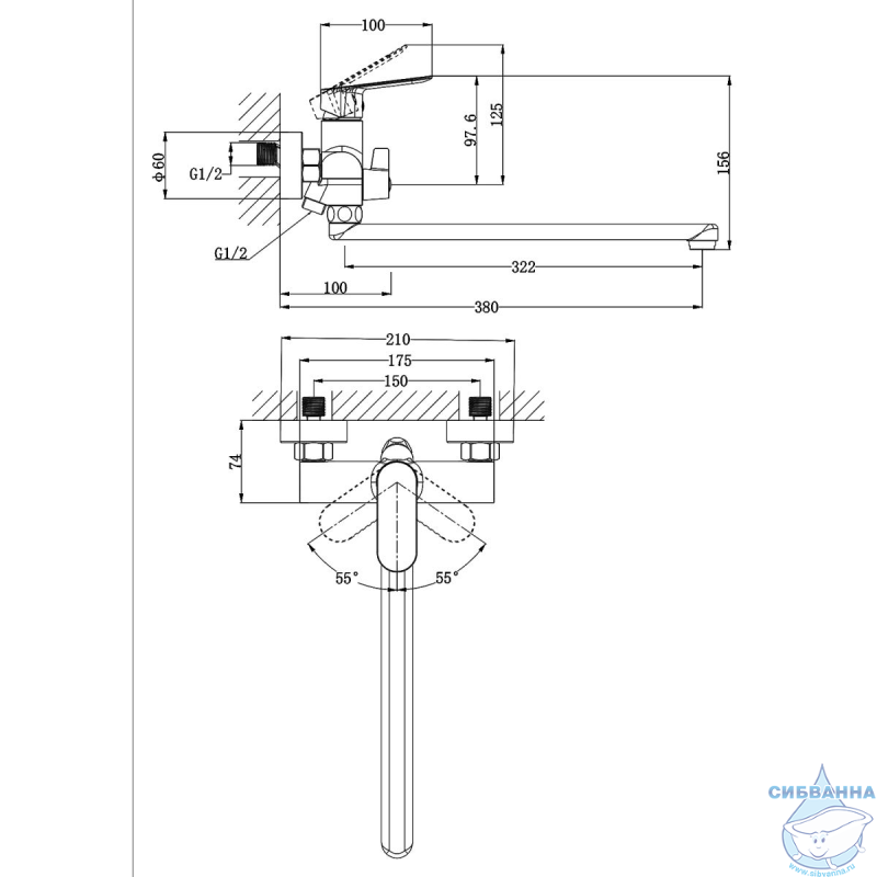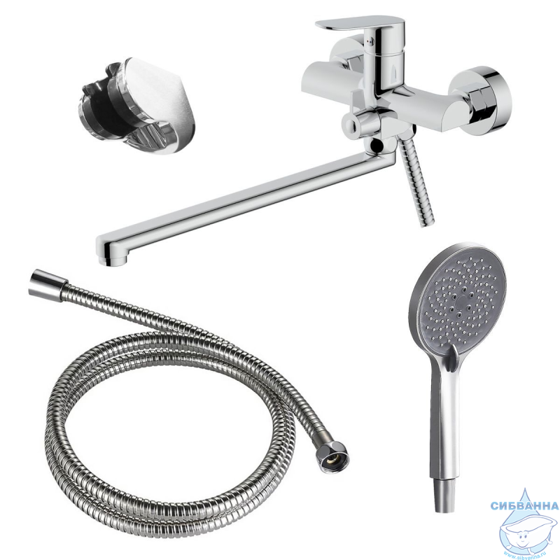 Смеситель для ванны Azario Alanti керамический картридж, длинный излив, с ручным душем, шланг 150 см, (AZ-K1732)