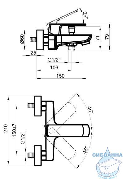 Смеситель AZARIO ATRI для ванны с коротким изливом, хром (AZ-15960501)