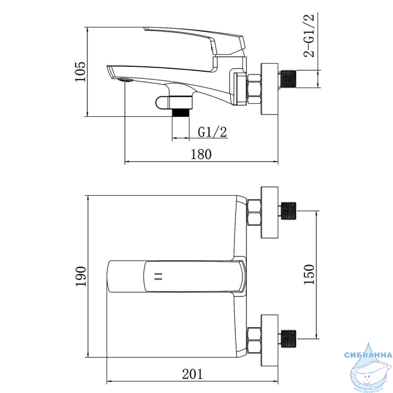 Смеситель для ванны Azario Conda с ручным душем, керамический картридж, шланг 150 см, (AZ-K3011)
