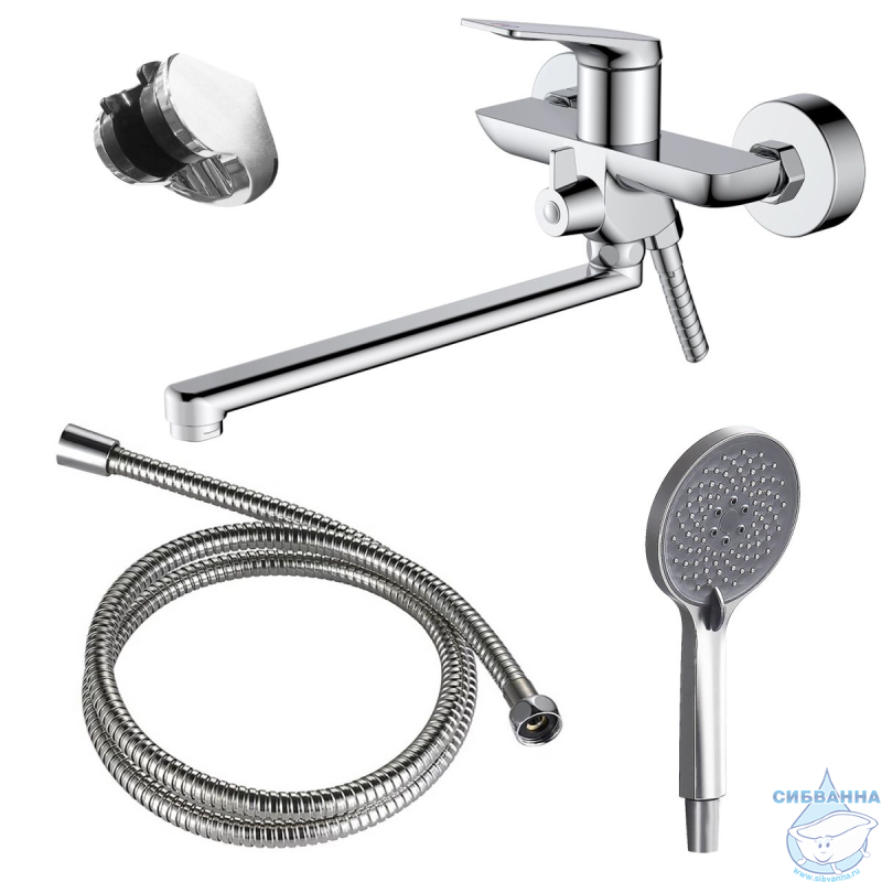 Смеситель для ванны Azario Lursy керамический картридж, длинный излив, с ручным душем, шланг 150 см, хром (AZ-K1749)