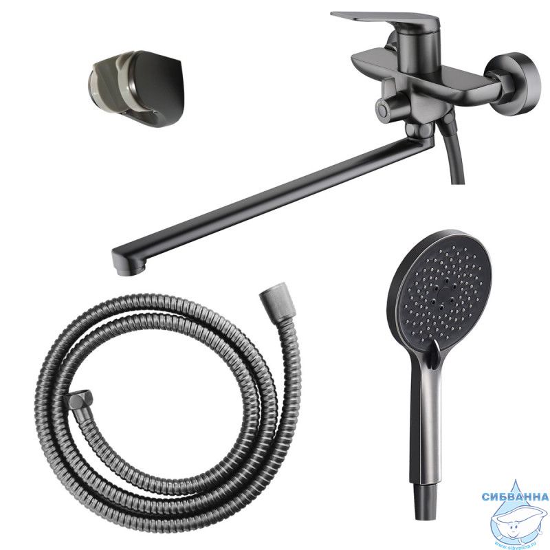 Смеситель для ванны Azario Lursy керамический картридж, длинный излив, с ручным душем, шланг 150 см, графит (AZ-K1749GR)