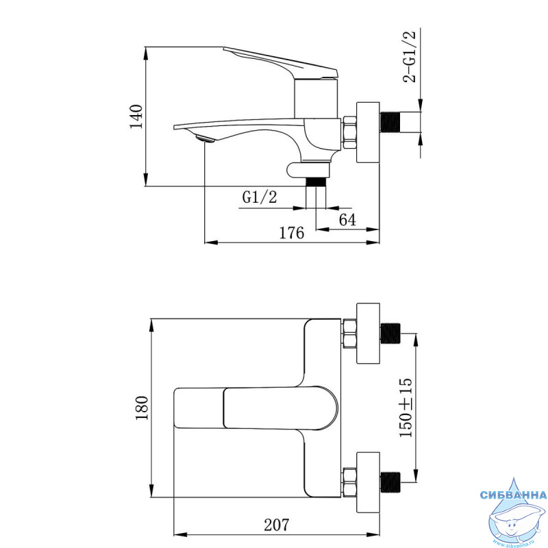 Смеситель для ванны Azario Lursy с ручным душем, керамический картридж, шланг 150 см, черный матовый (AZ-K3049B)