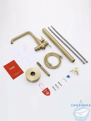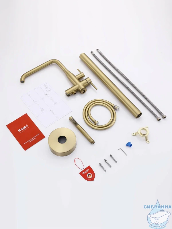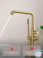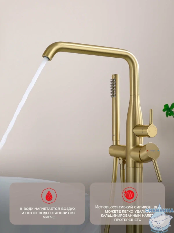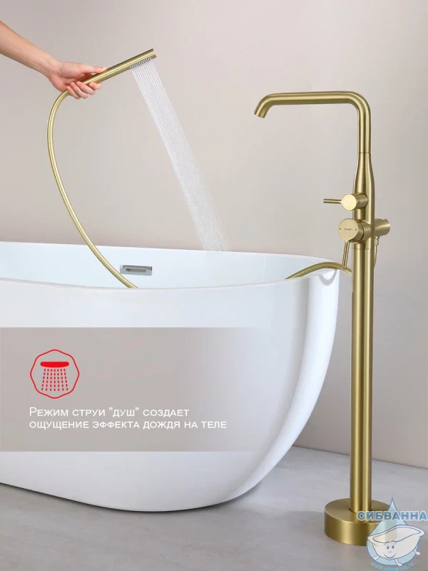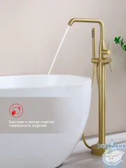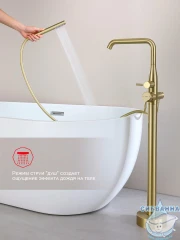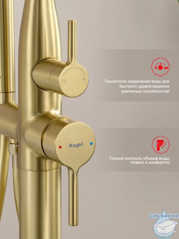 Смеситель для ванны напольный Raglo R20.33.03 с душевым гарнитуром (сатин золотой)