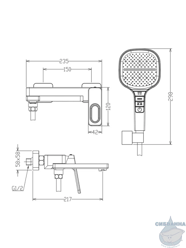 Смеситель для ванны Raglo R51.30 с душевым гарнитуром.