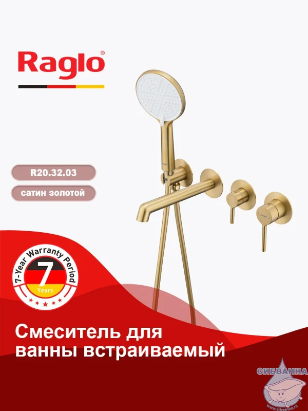 Встраиваемый смеситель для ванны Raglo R20.32.03 (сатин золотой)