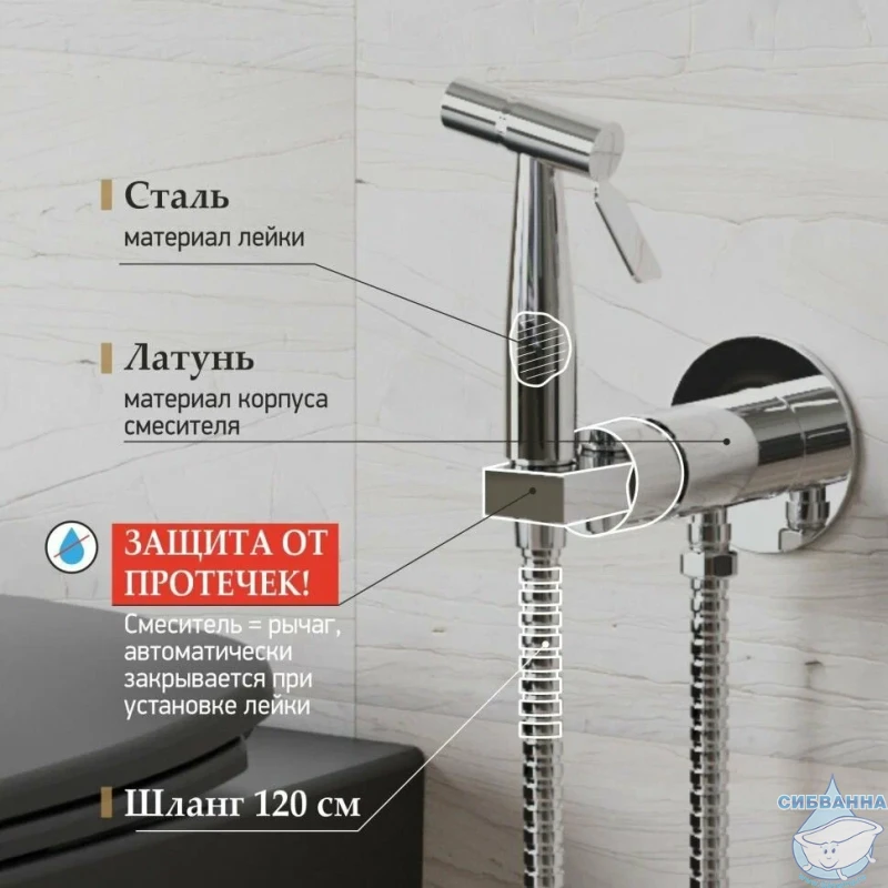 Невозможно забыть закрыть воду! Установив лейку на держатель, который является одновременно и рычагом смесителя, вы автоматически выключаете напор. Гигиенический душ прослужит долго, безопасность на высоте.