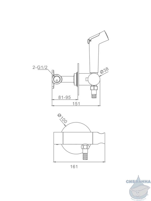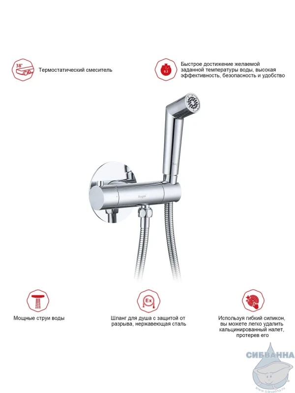 Гигиенический душ со смесителем Raglo R23.56 с термостатом.