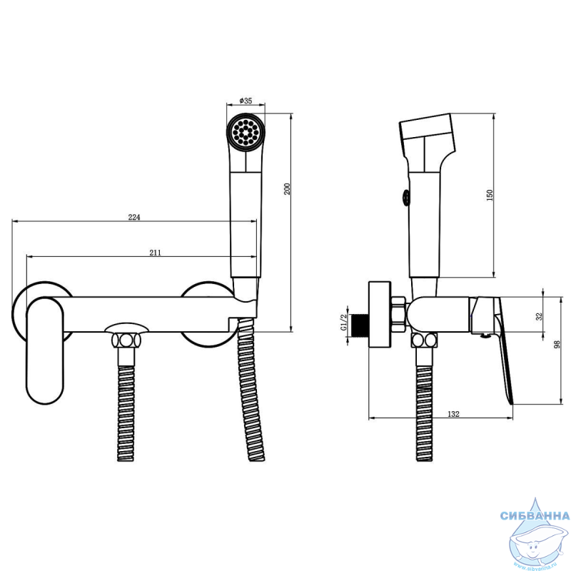 Гигиенический душ Azario Alanti со смесителем, керамический картридж, однорычажный, шланг 150 см,(AZ-K2532)