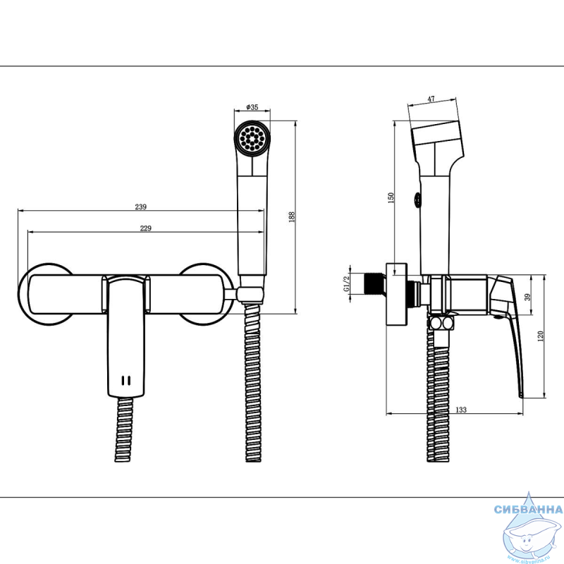 Гигиенический душ Azario Conda со смесителем, керамический картридж, шланг 150 см, (AZ-K2511)