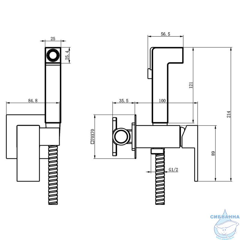 Гигиенический душ Azario Graves со смесителем, керамический картридж, скрытый монтаж, шланг 150 см, (AZ-KFX03)
