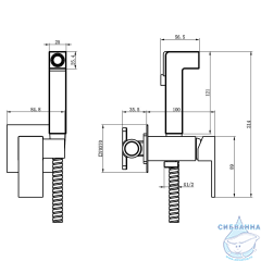 Гигиенический душ Azario Graves со смесителем, керамический картридж, скрытый монтаж, шланг 150 см, (AZ-KFX03)