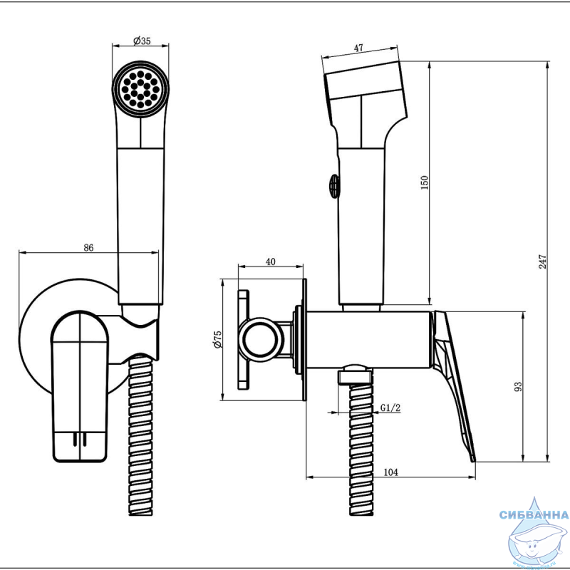 Гигиенический душ Azario Lursy со смесителем, скрытый монтаж, шланг 150 см, черный матовый (AZ-KFX49B)