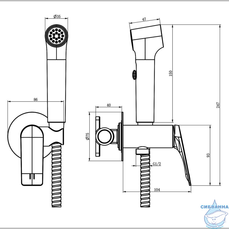 Гигиенический душ Azario Lursy со смесителем, скрытый монтаж, шланг 150 см, графит (AZ-KFX49GR)