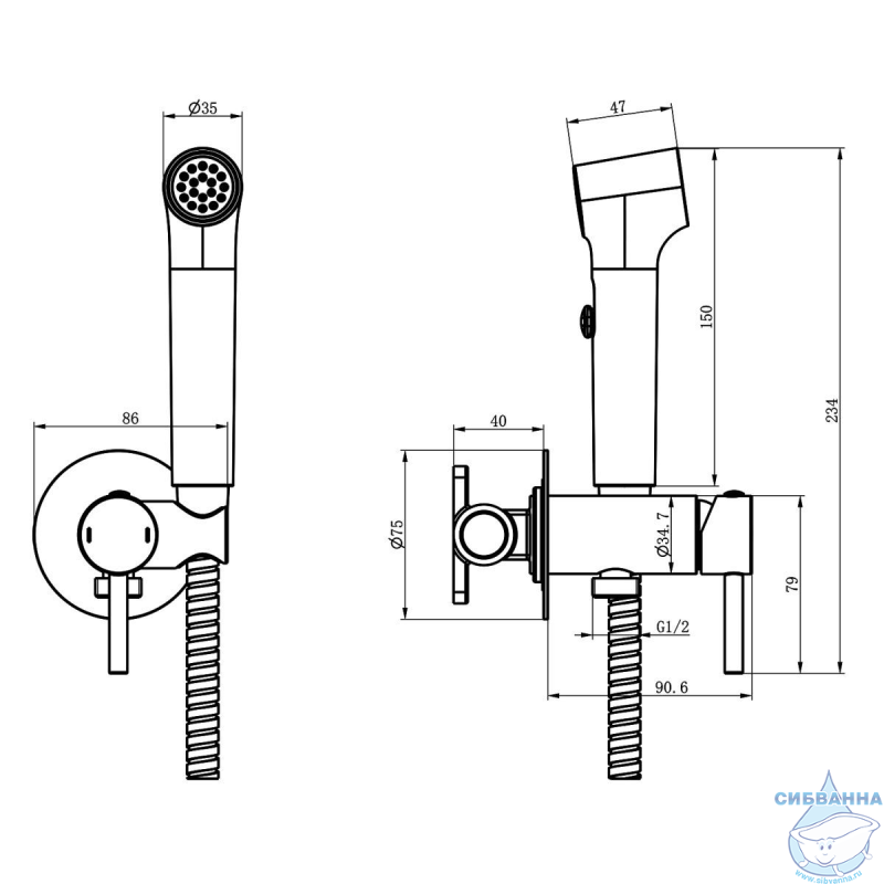 Гигиенический душ Azario Nyons со смесителем, скрытый монтаж, шланг 150 см, (AZ-KFX)