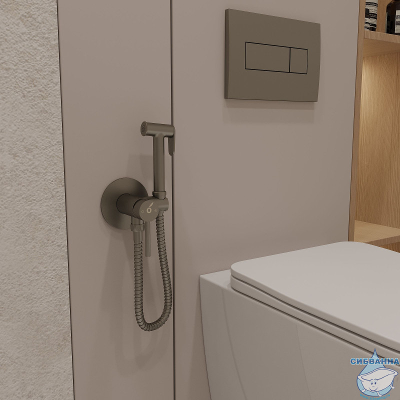 Встраиваемый смеситель с гигиеническим душем Oliveeka Y-Line OL-829902-BGM (оружейная сталь)