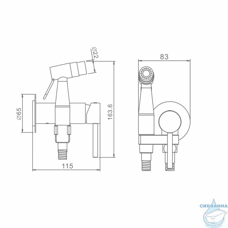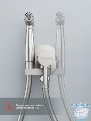 В комплект поставки входят смеситель, гигиенический душ, ручной душ, шланг для душа, держатель душевой лейки и держатель лейки.