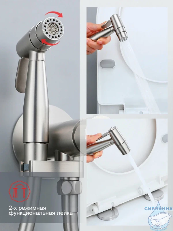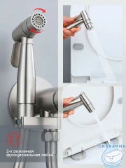 Гигиенический душ и ручной душ в комплекте позволяют использовать смеситель для различных нужд. Длина шланга составляет 1200 мм, что обеспечивает комфортное использование.