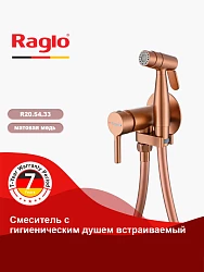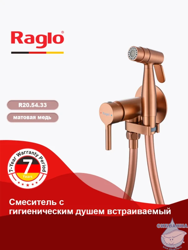 Встраиваемый смеситель с гигиеническим душем Raglo R20.54.33 - это стильное и функциональное решение для вашей ванной комнаты. Изготовленный из высококачественной латуни с покрытием PVD, этот смеситель обеспечивает долговечность и надежность в использовании. Матовый медный цвет смесителя придает ему элегантный и современный вид, который будет гармонично сочетаться с любым интерьером ванной комнаты. Смеситель оснащен рычажным управлением, что обеспечивает удобство и простоту использования. Длина шланга составляет 1200 мм, что позволяет комфортно использовать гигиенический душ на расстоянии от смесителя. Смеситель оснащен аэратором, который обеспечивает равномерное распределение воды и экономию воды. Смеситель имеет держатель душевой лейки и комплектуется ручным душем с одним режимом работы. Смеситель монтируется встраиваемым способом, что позволяет сохранить свободное пространство в ванной комнате. Высота изделия в сборе составляет 164 мм, глубина - 115 мм, а ширина - 83 мм.