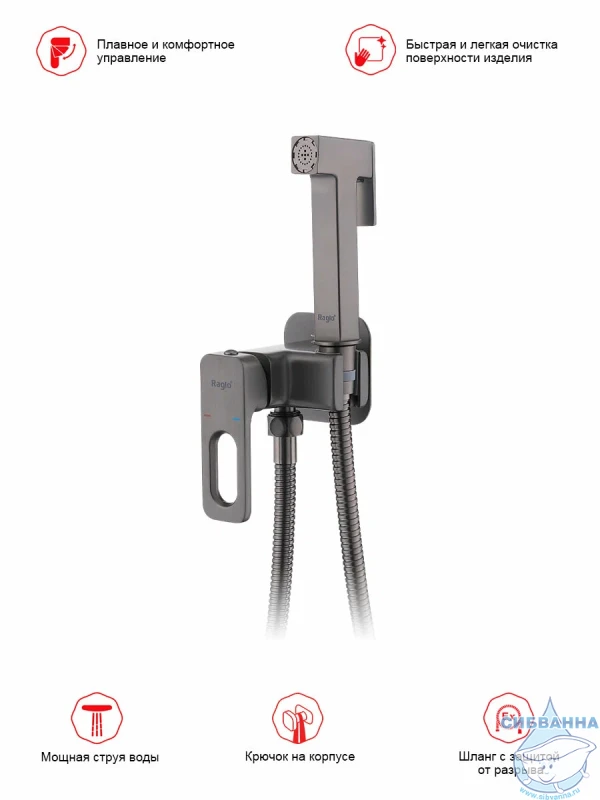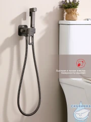 Гигиенический душ со смесителем представляет собой удобный альтернативный вариант стандартному биде. Шланг обладает длиной 120 см что вполне достаточно для комфортного использования. Душевой шланг имеет металлическую оплетку, что обеспечивает его прочность и защиту от перекручивания. Лейка для гигиенического душа хорошо держится в руке и обеспечивает комфорт всех проводимых манипуляций с использованием биде для унитаза. В комплекте встраиваемый смеситель (внутренняя часть в комплекте), лейка гигиенического душа, держатель лейки и душевой шланг. Устройство оснащено керамическим картриджем и рычажным управлением, что гарантирует плавную и точную регулировку воды. Присоединительный размер - G 1/2, предназначен для одного потребителя. Защита от обратного потока и ограничение температуры отсутствуют.