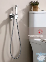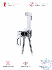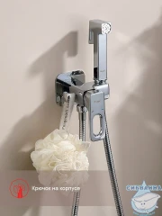 Гигиенический душ со смесителем представляет собой удобный альтернативный вариант стандартному биде. Шланг обладает длиной 120 см что вполне достаточно для комфортного использования. Душевой шланг имеет металлическую оплетку, что обеспечивает его прочность и защиту от перекручивания. Лейка для гигиенического душа хорошо держится в руке и обеспечивает комфорт всех проводимых манипуляций с использованием биде для унитаза. В комплекте встраиваемый смеситель (внутренняя часть в комплекте), лейка гигиенического душа, держатель лейки и душевой шланг. Устройство оснащено керамическим картриджем и рычажным управлением, что гарантирует плавную и точную регулировку воды. Присоединительный размер - G 1/2, предназначен для одного потребителя. Защита от обратного потока и ограничение температуры отсутствуют.