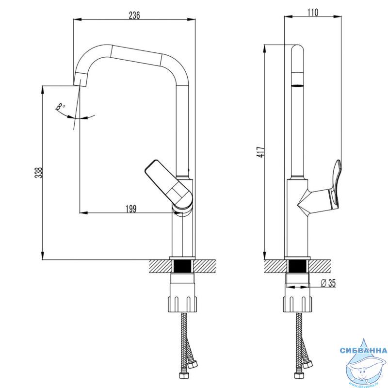 • Длина излива 20 см