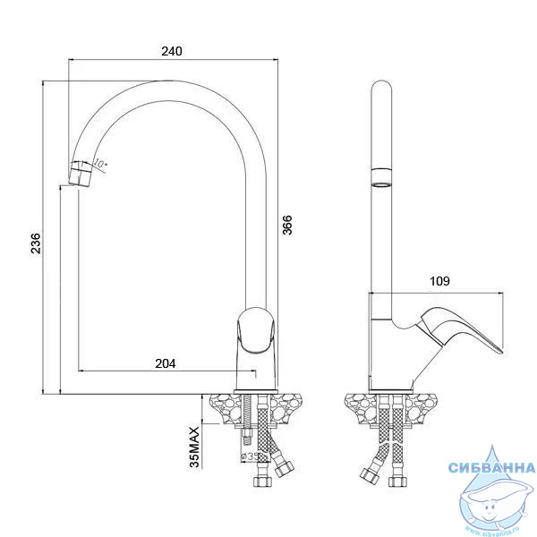 Смеситель для кухонной мойки AZARIO EVORA керамический картридж, хром (AZ-WKE56266C)
