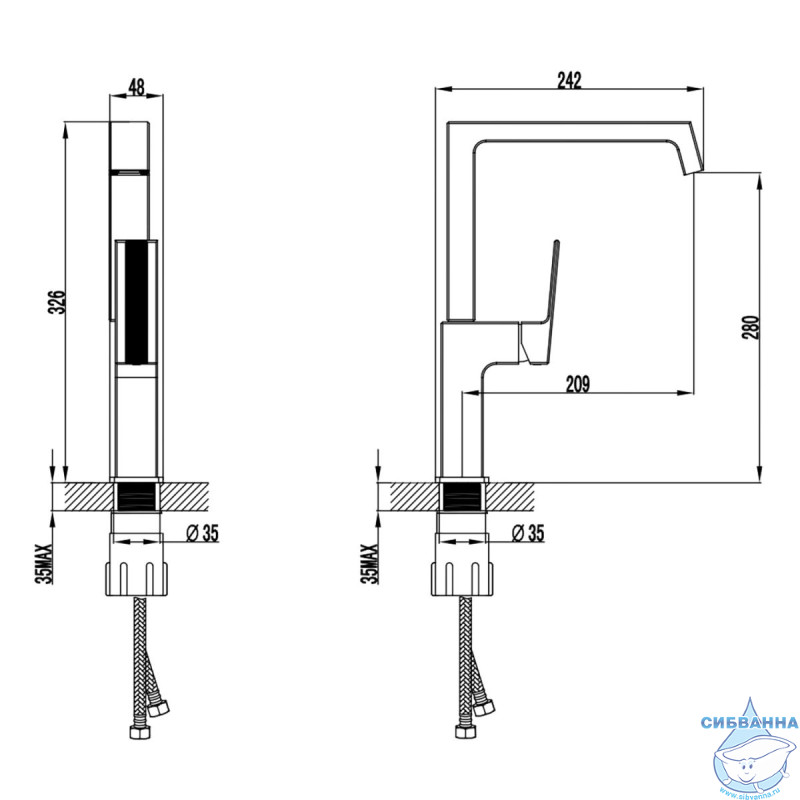 Смеситель для кухонной мойки Azario EXQUISITE керамический картридж, хром (AZ-VSM568340C)