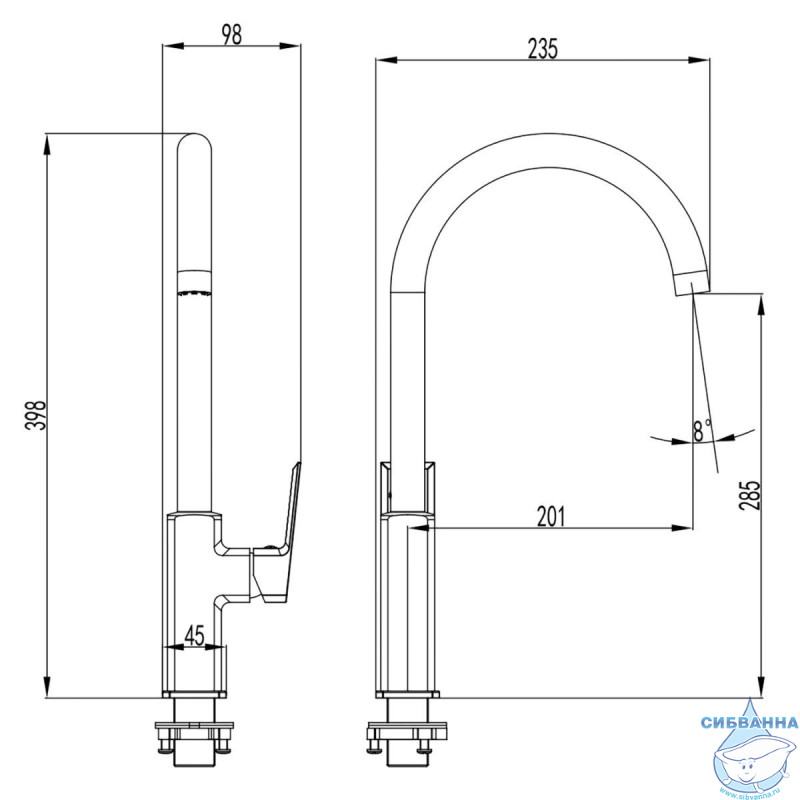 Смеситель для кухонной мойки Azario HARDCORE керамический картридж, хром (AZ-VJG568277C)
