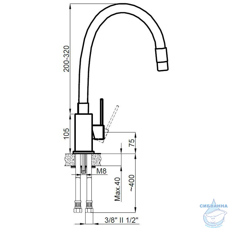Установка смесителя не требует особых навыков или инструментов. Комплект для установки включает все необходимые элементы - крепеж, прокладки, шланги и т.д. Подключение к водопроводу осуществляется через накладную подводку.
