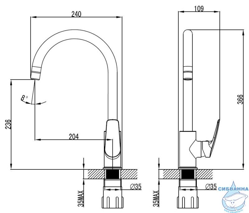 • Длина излива 20 см