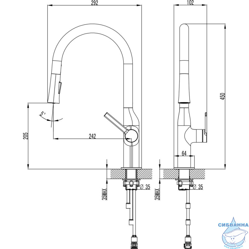 Смеситель для кухонной мойки Azario VINCENTE выдвижной излив, керамический картридж, (AZ-VPV569064)
