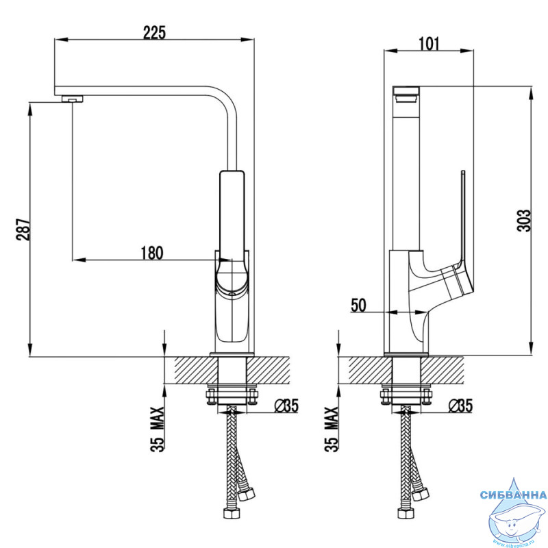 • Монтаж на раковину/столешницу