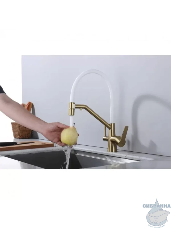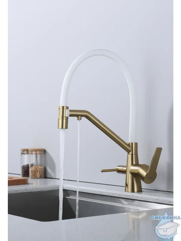 Излив: съемный на магните, поворотный, гибкий, с каналом для питьевой воды.