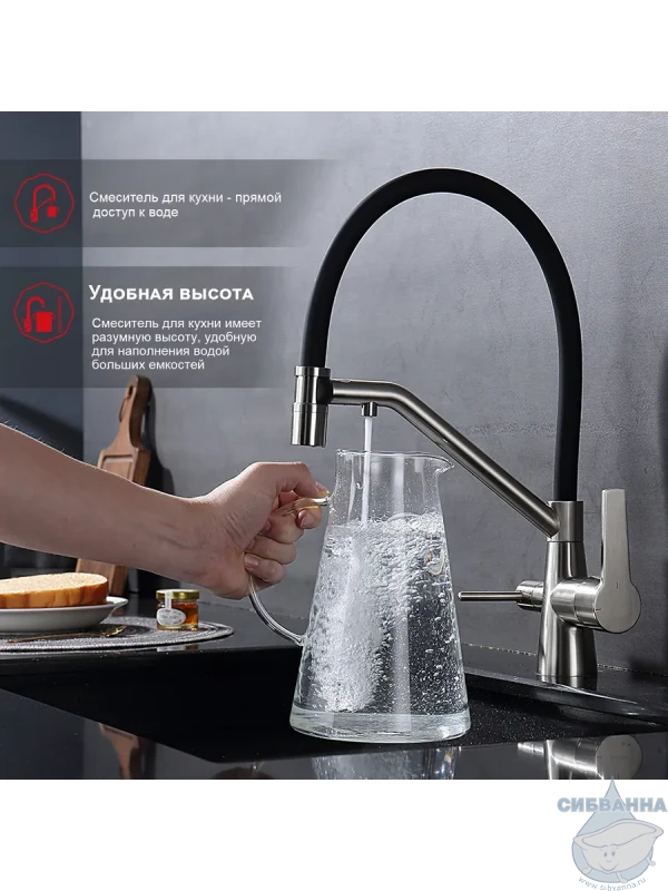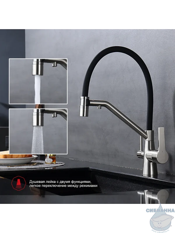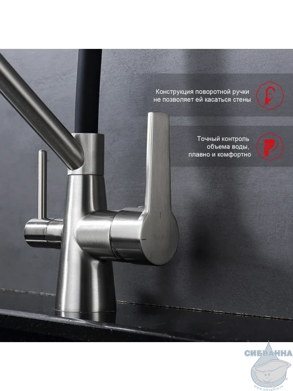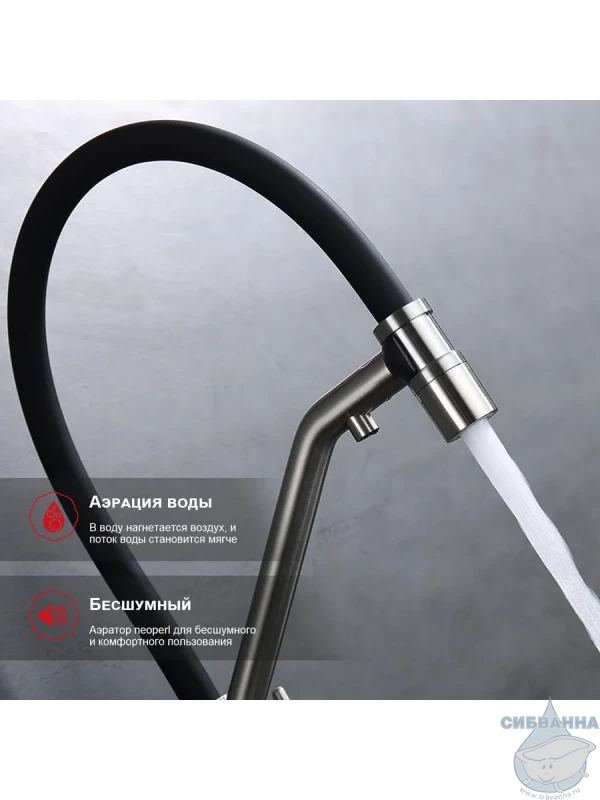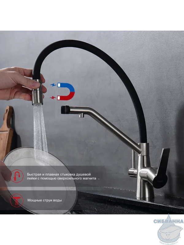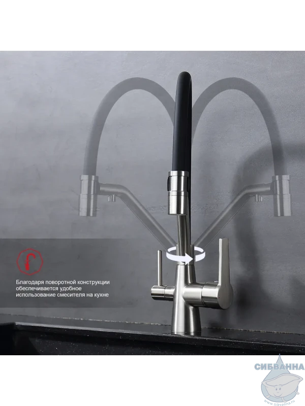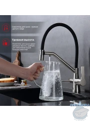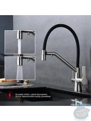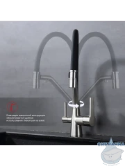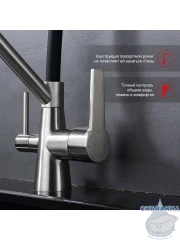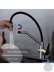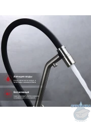 Излив: съемный на магните, поворотный, гибкий, с каналом для питьевой воды.