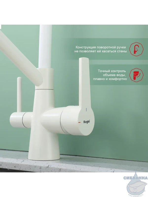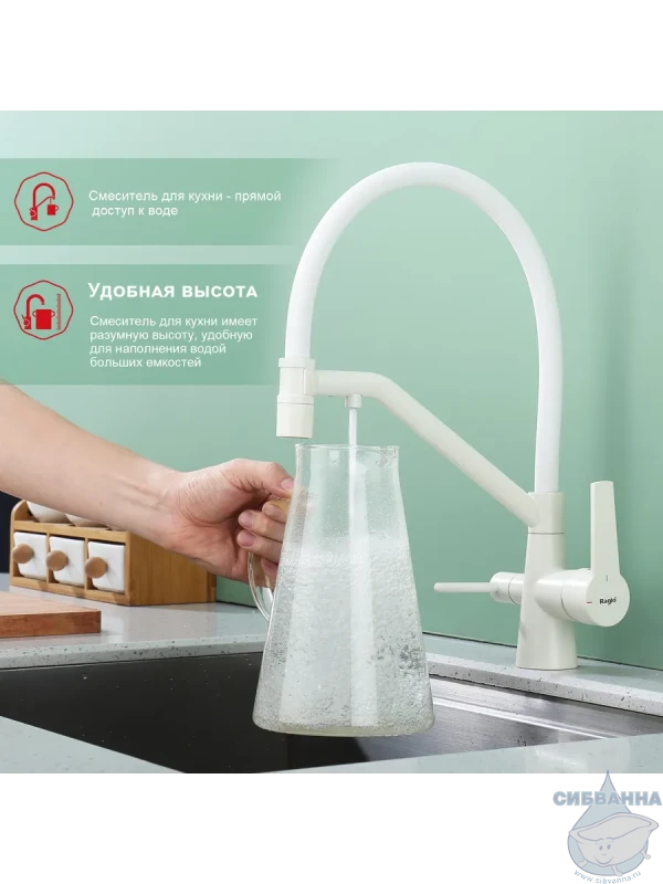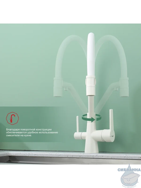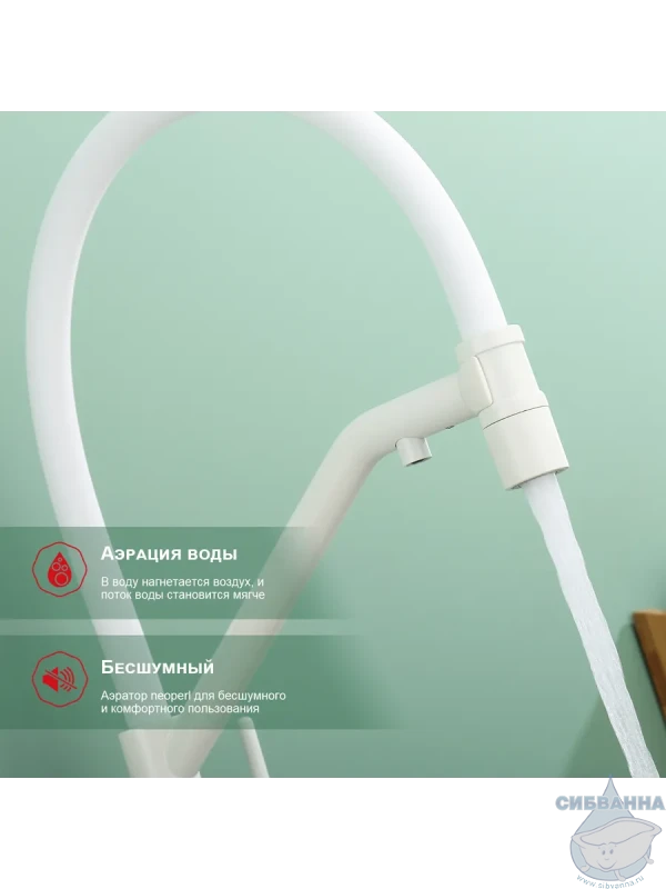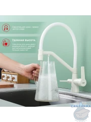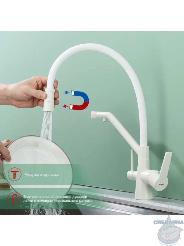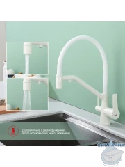 Излив: съемный на магните, поворотный, гибкий, с каналом для питьевой воды.