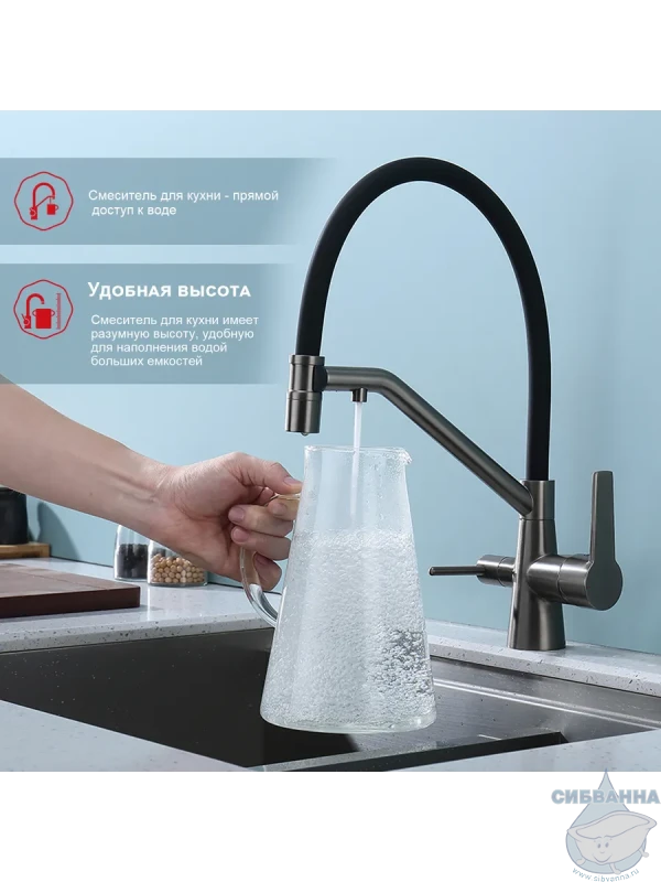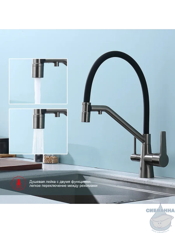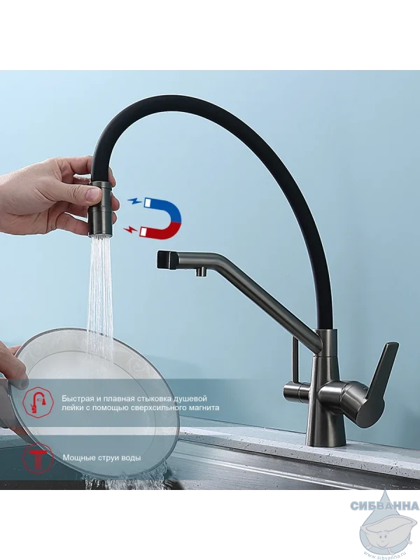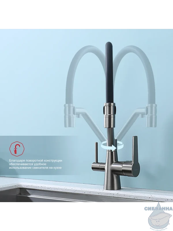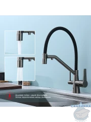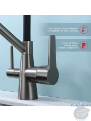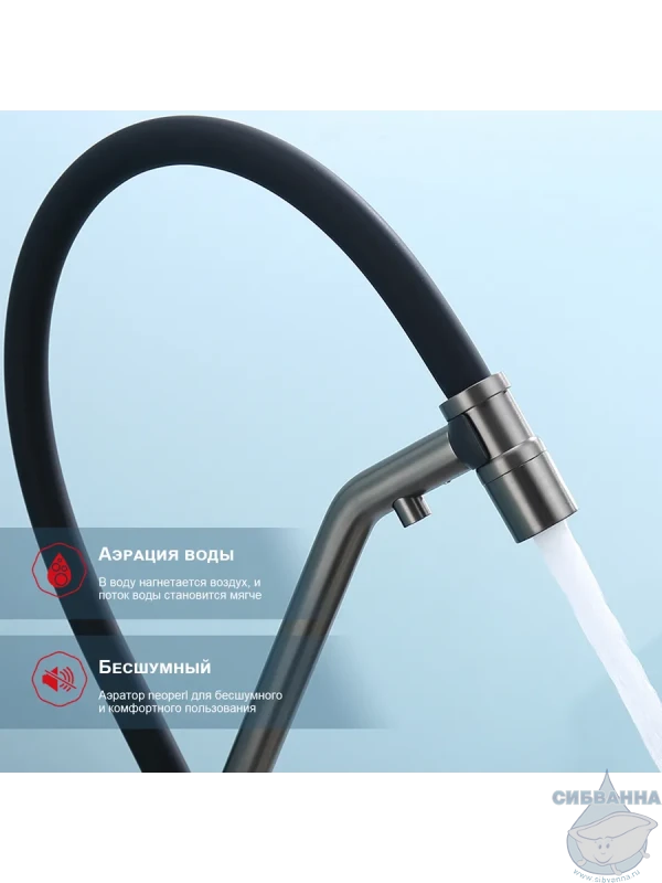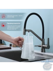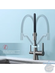 Излив: съемный на магните, поворотный, гибкий, с каналом для питьевой воды.