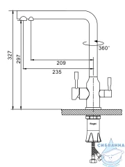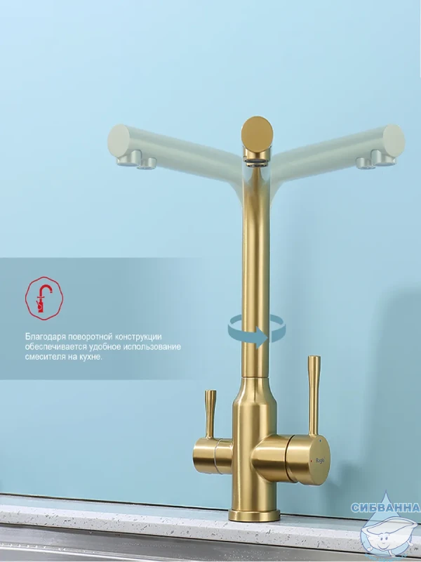Излив: поворотный (угол поворота 360 градусов), с каналом для питьевой воды.