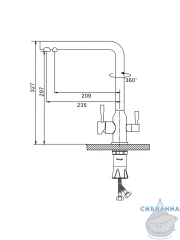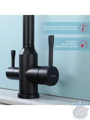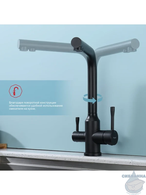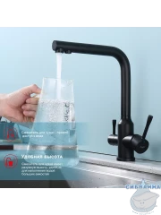 Излив: поворотный (угол поворота 360 градусов), с каналом для питьевой воды.