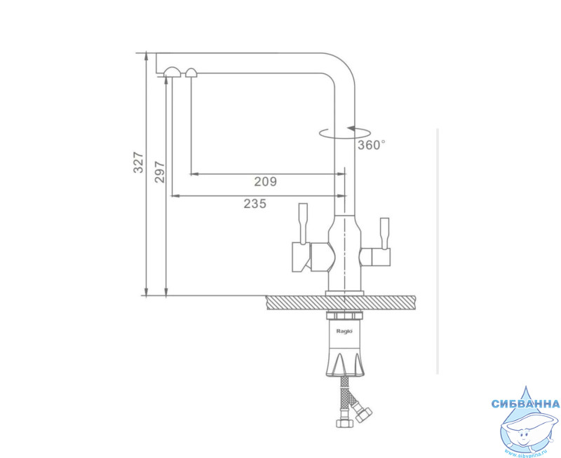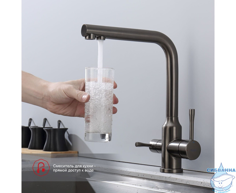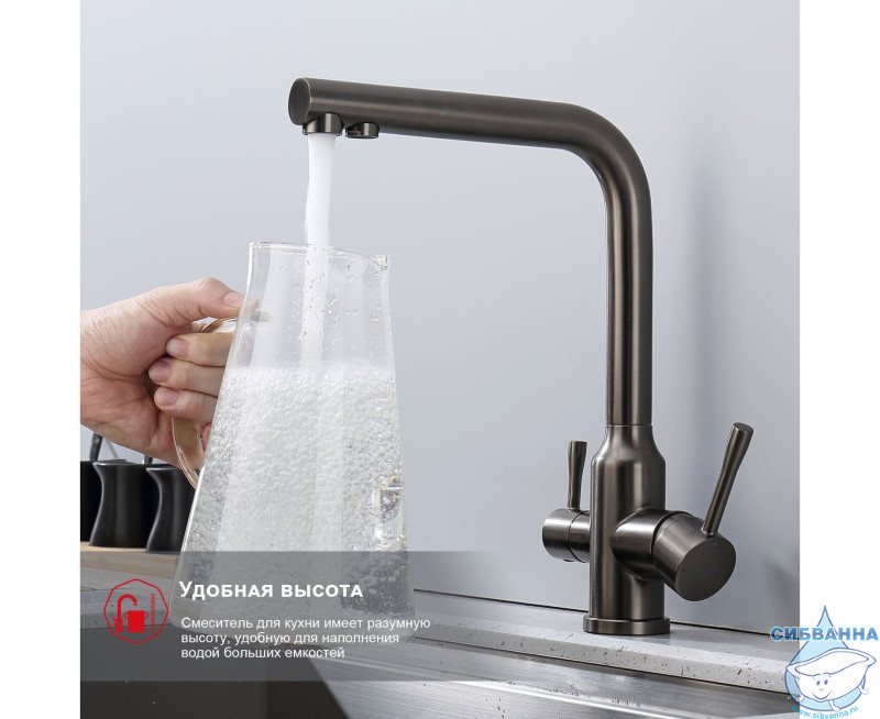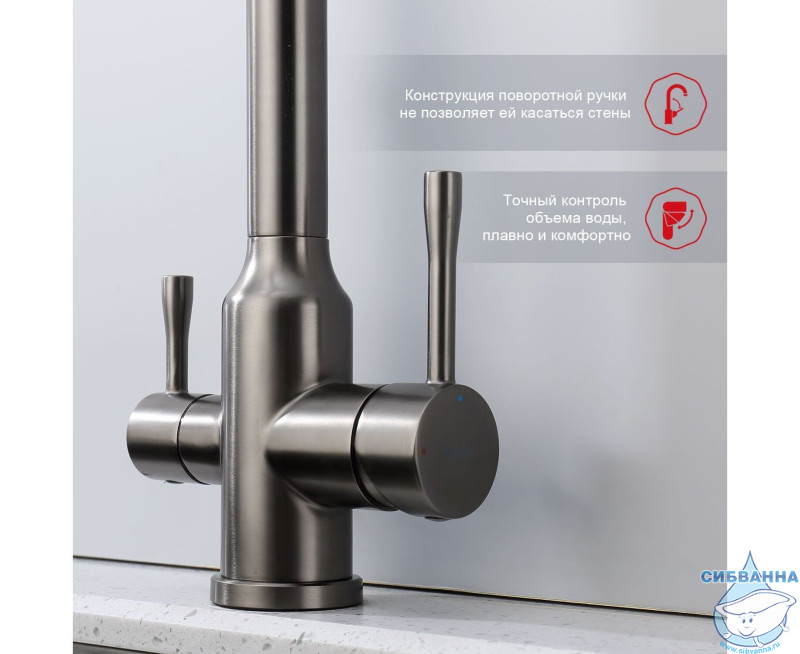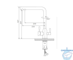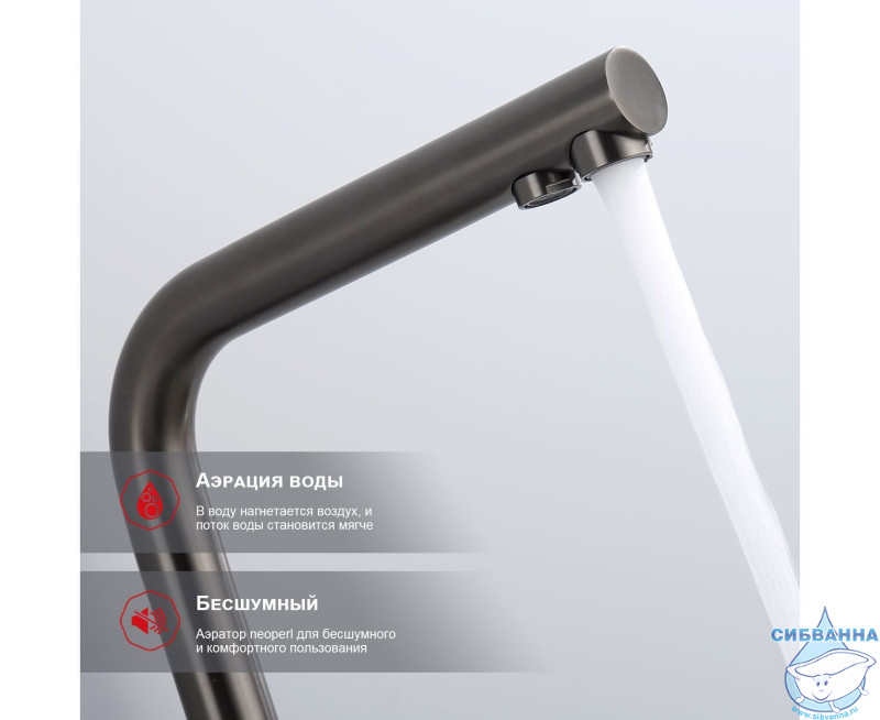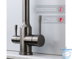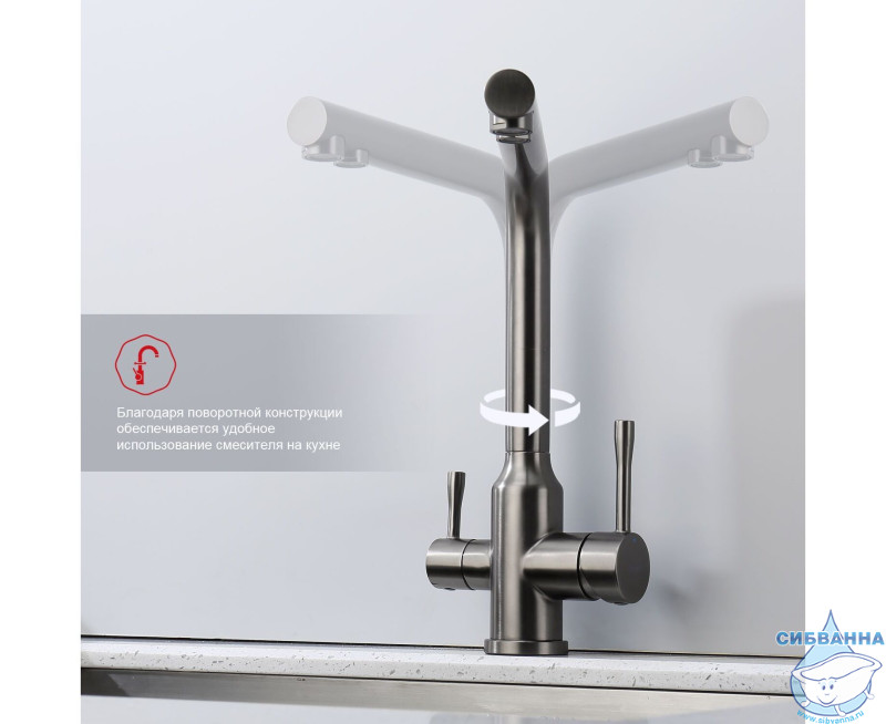 Излив: поворотный (угол поворота 360 градусов), с каналом для питьевой воды.