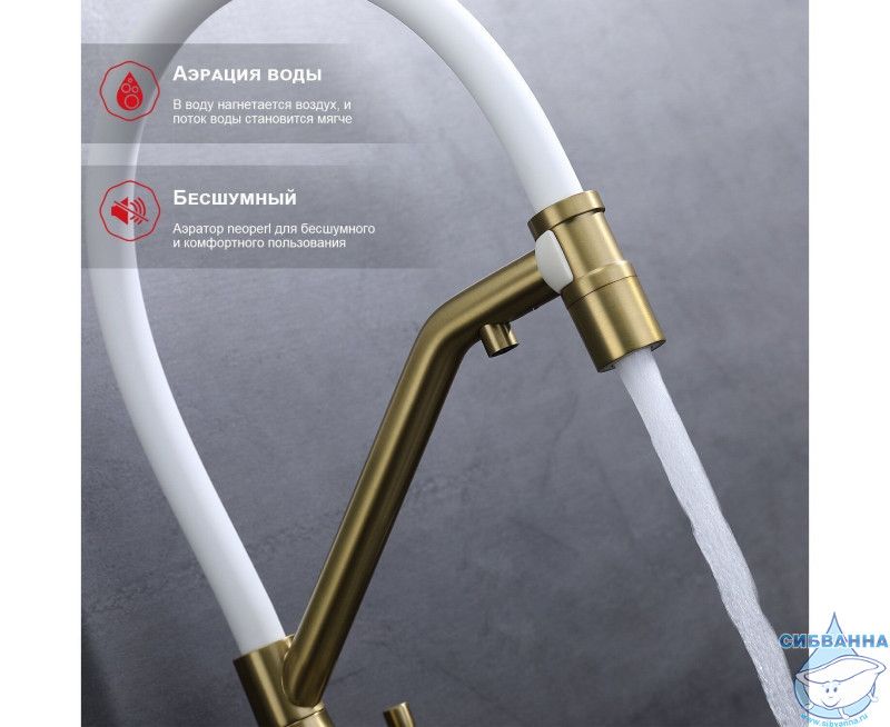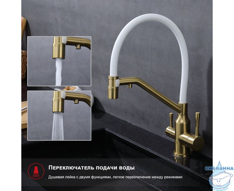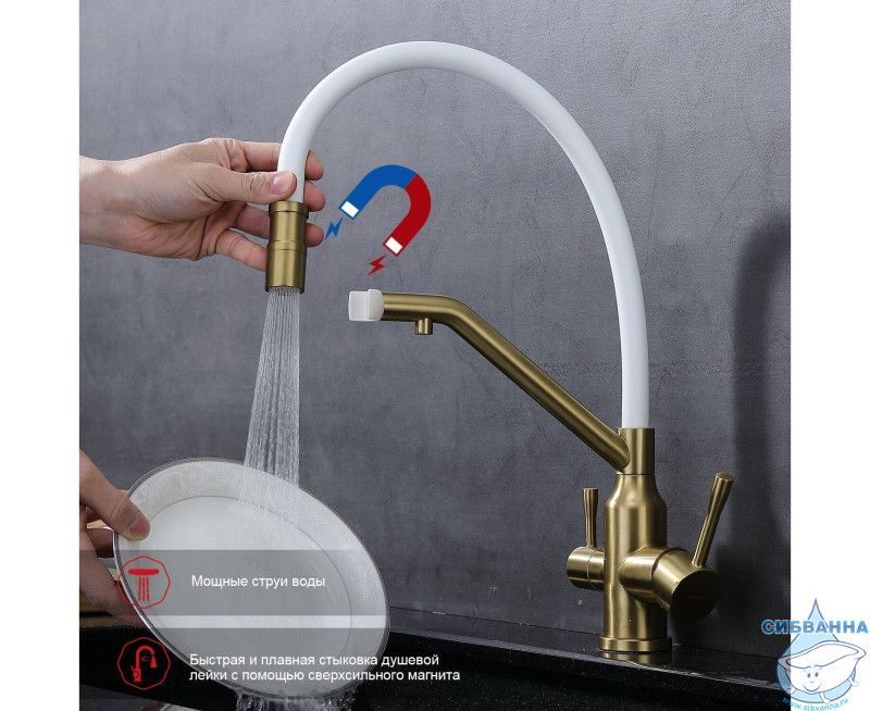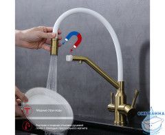 Излив: съемный на магните, поворотный, гибкий, с каналом для питьевой воды.