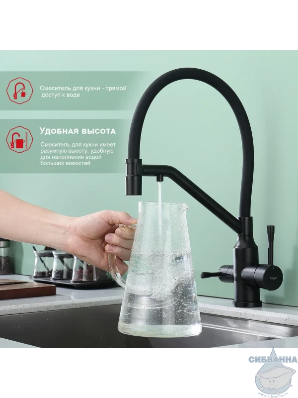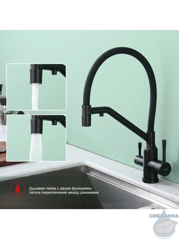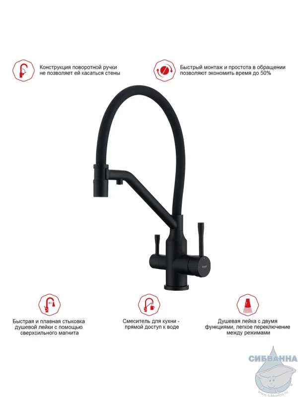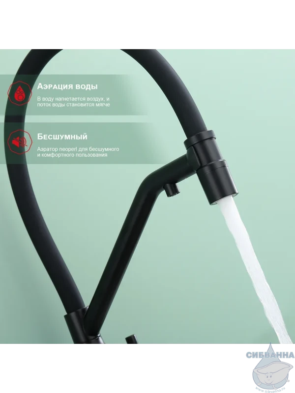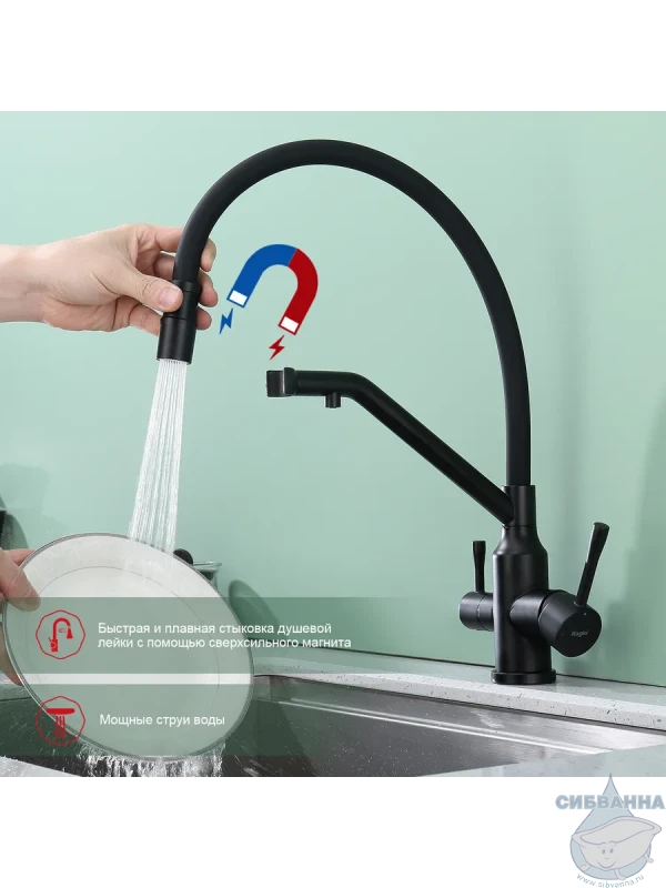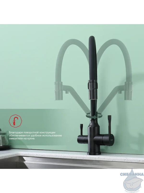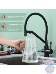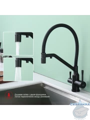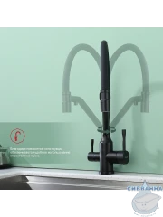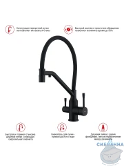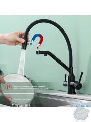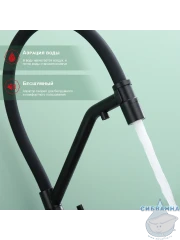 Излив: съемный на магните, поворотный, гибкий, с каналом для питьевой воды.