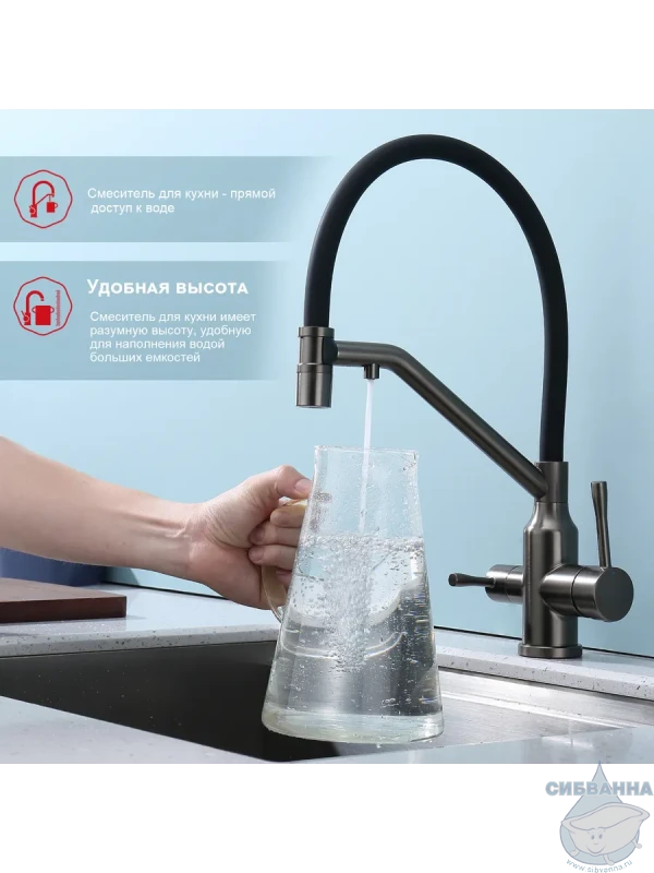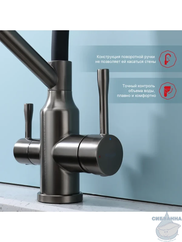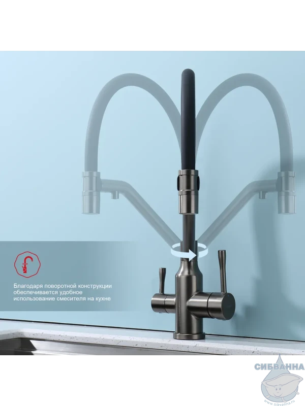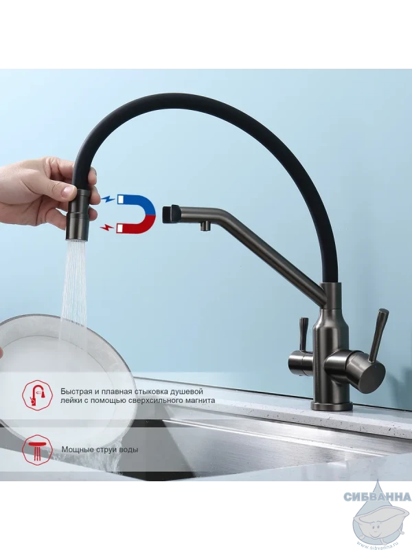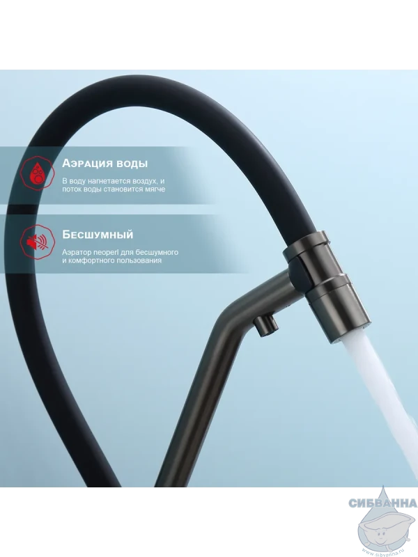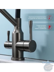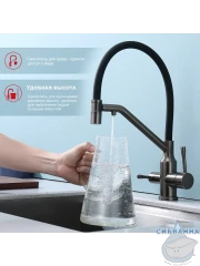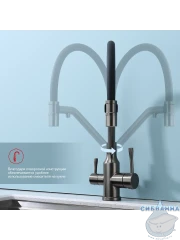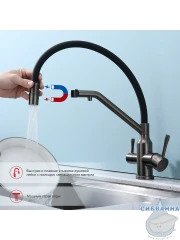 Излив: съемный на магните, поворотный, гибкий, с каналом для питьевой воды.