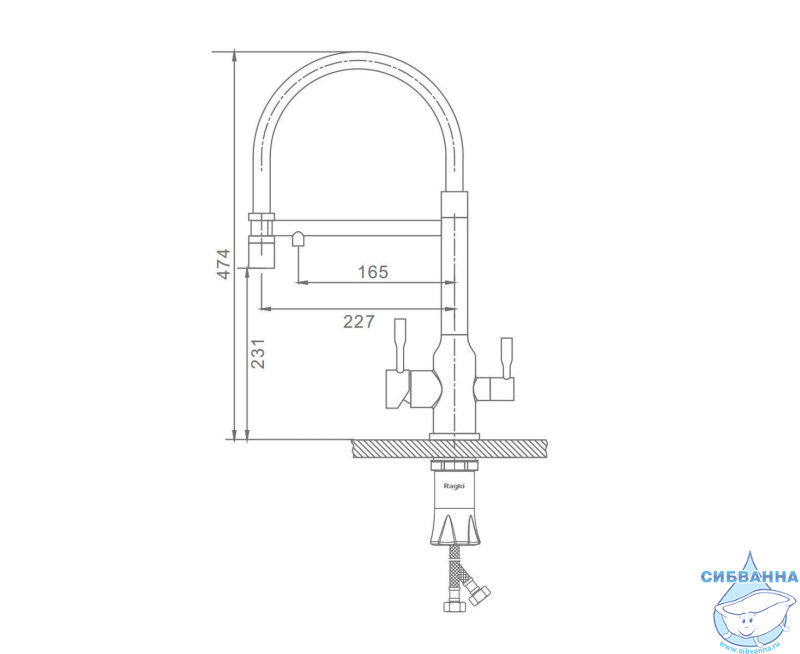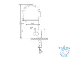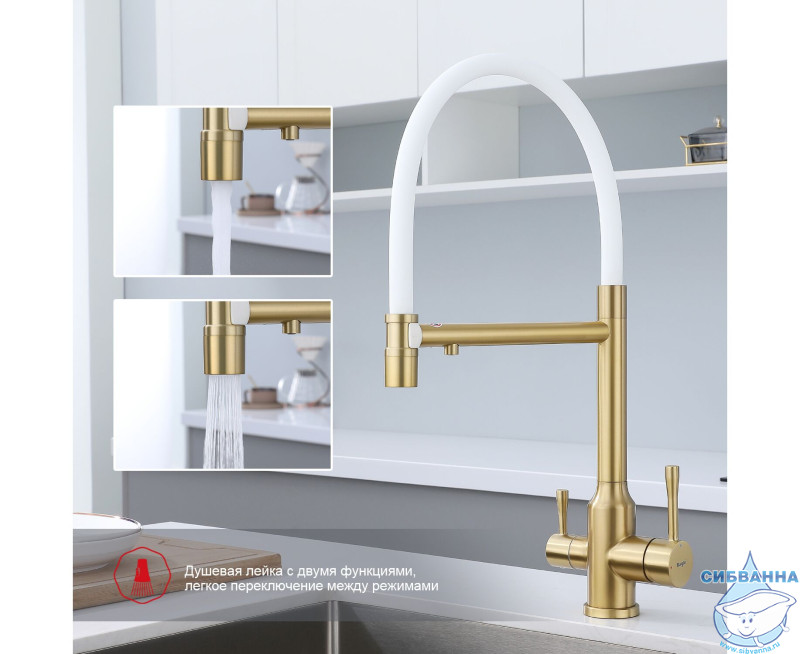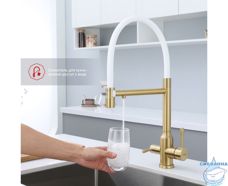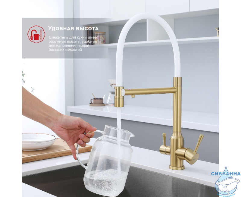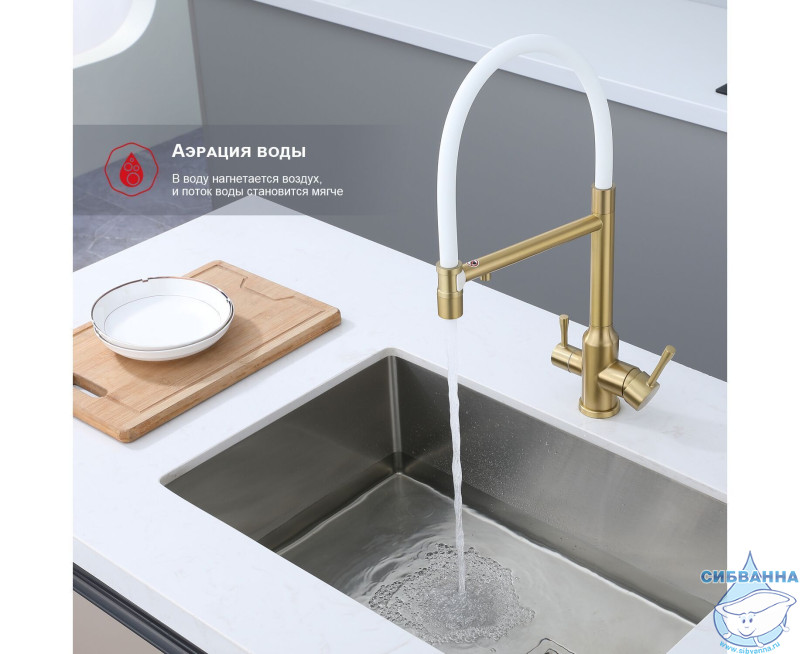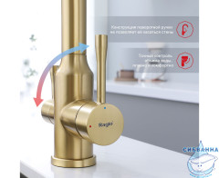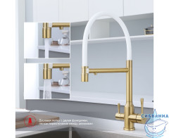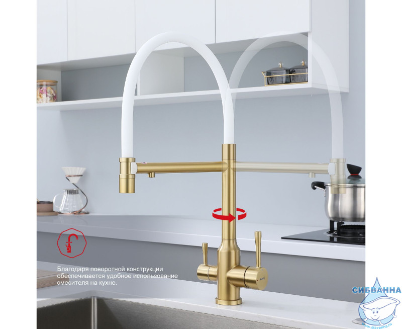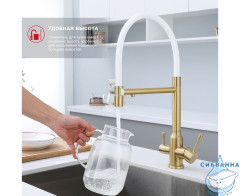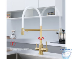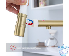 Излив: съемный на магните, поворотный, гибкий, с каналом для питьевой воды.