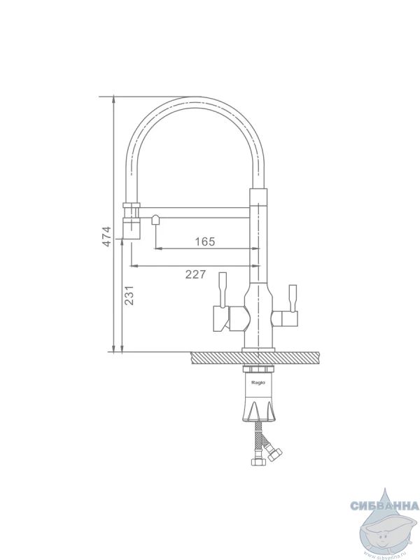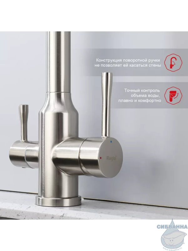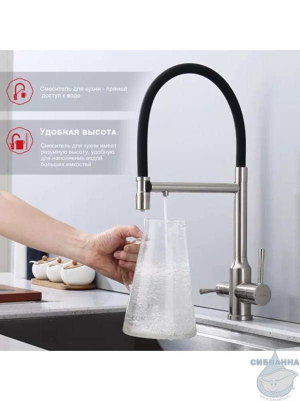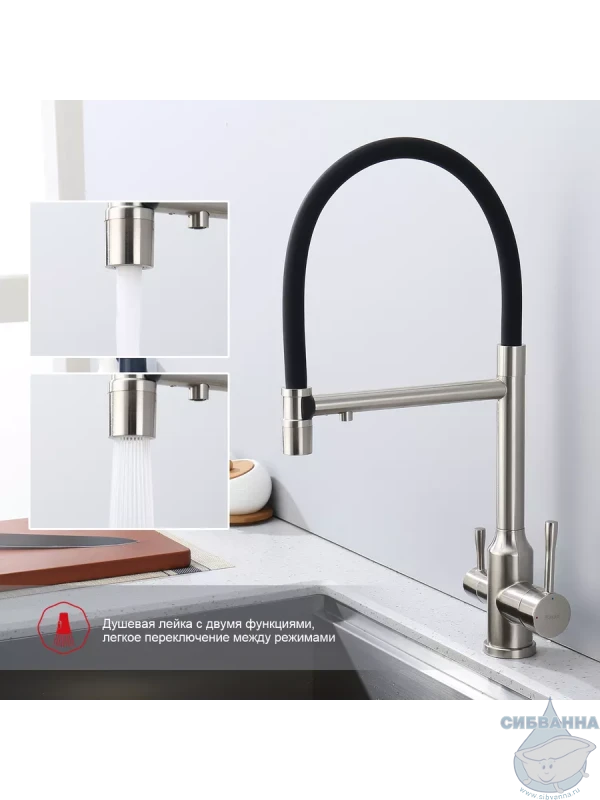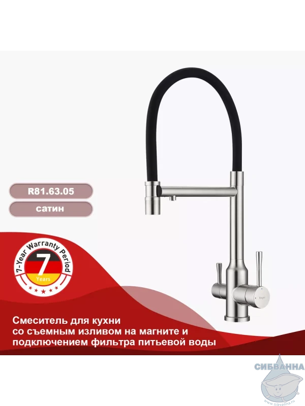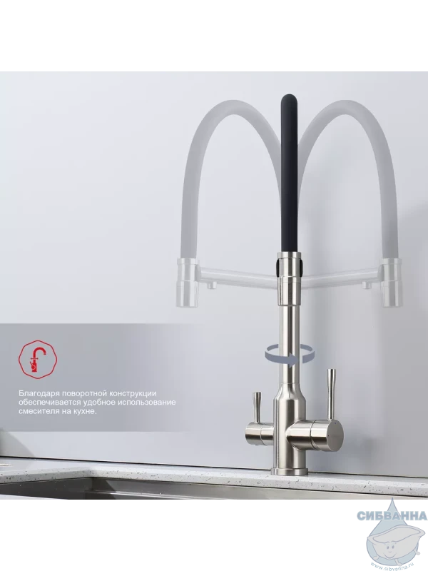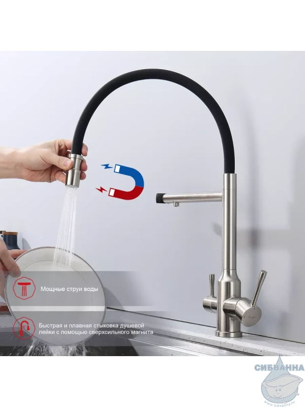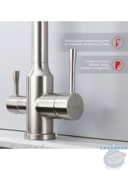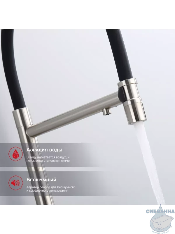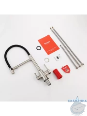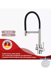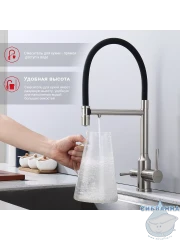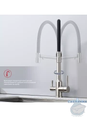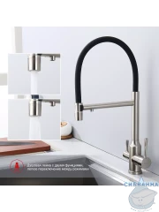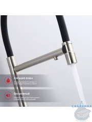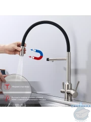 Излив: съемный на магните, поворотный, гибкий, с каналом для питьевой воды.